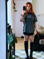 sold out five times, more are on the way! It’s just like the baby tee, only bigger! our best-seller for a reason, this baddie is a beautiful sparkly rhinestone print on a big, boxy, oversized, vintage washed t-shirt.