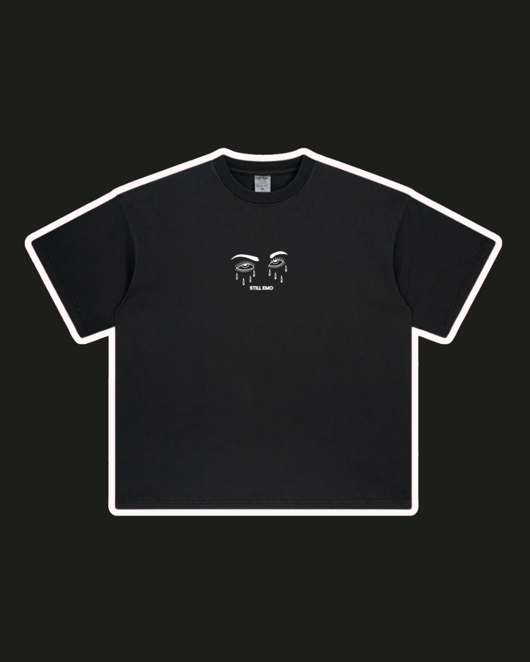 as requested as the songs listed on the back at the local emo club, our best-selling still emo playlist tee has returned. same energy. same feelings. same playlist.